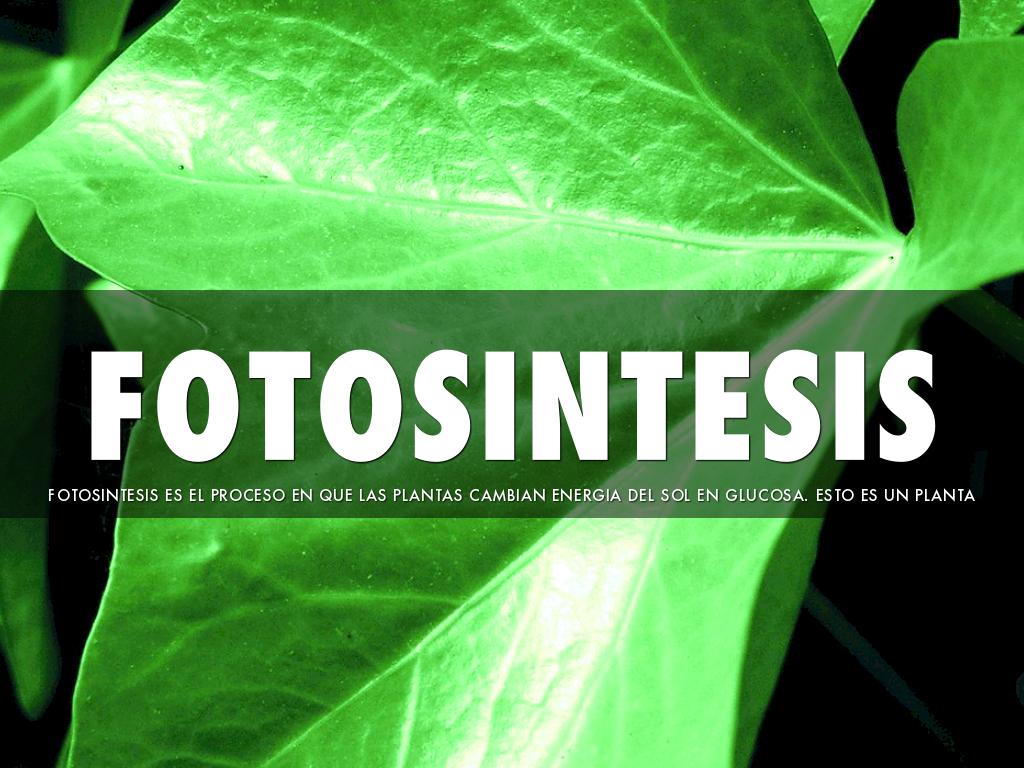 FOTOSINTESIS ES EL PROCESO EN QUE LAS PLANTAS CAMBIAN ENERGIA DEL SOL EN GLUCOSA. ESTO ES UN PLANTA