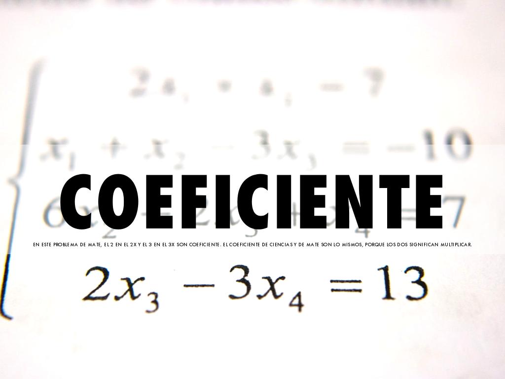 EN ESTE PROBLEMA DE MATE, EL 2 EN EL 2X Y EL 3 EN EL 3X SON COEFICIENTE. EL COEFICIENTE DE CIENCIAS Y DE MATE SON LO MISMOS, PORQUE LOS DOS SIGNIFICAN MULTIPLICAR.