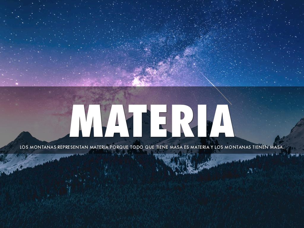 LOS MONTANAS REPRESENTAN MATERIA PORQUE TODO QUE TIENE MASA ES MATERIA Y LOS MONTANAS TIENEN MASA.