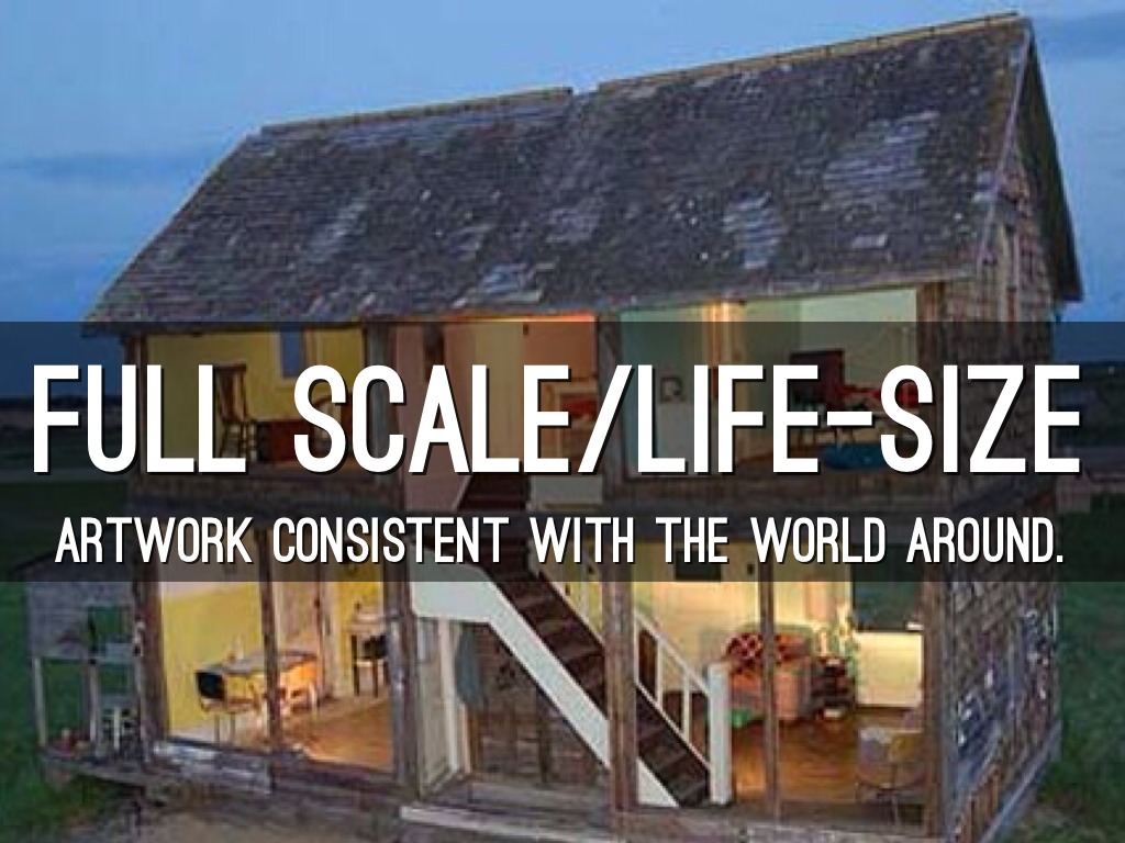 ARTWORK THAT IS LARGE COMPARED TO THE WORLD SROUND.