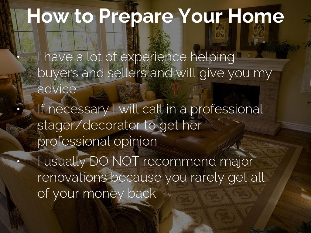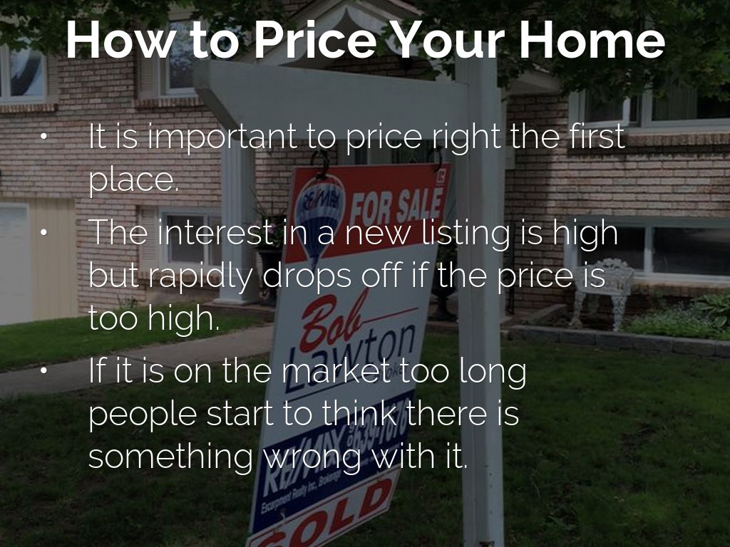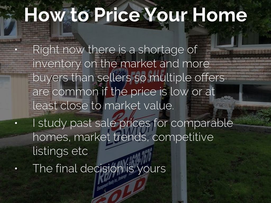 I study past sale prices for comparable homes, market trends, competitive listings etc