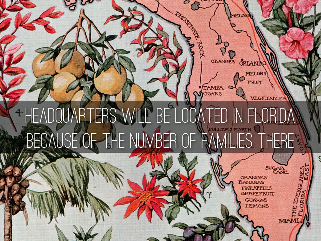 HEADQUARTERS WILL BE LOCATED IN FLORIDA
