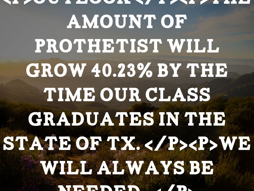 the amount of Prothetist will grow 40.23% by the time our class graduates in the state of TX.