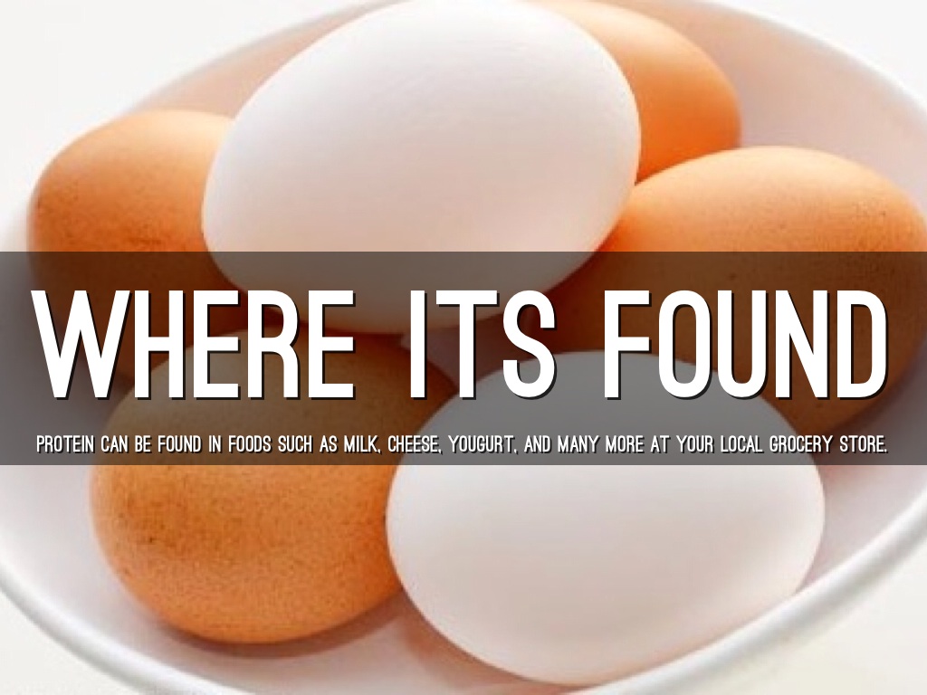 PROTEIN CAN BE FOUND IN FOODS SUCH AS MILK, CHEESE, YOUGURT, AND MANY MORE AT YOUR LOCAL GROCERY STORE.