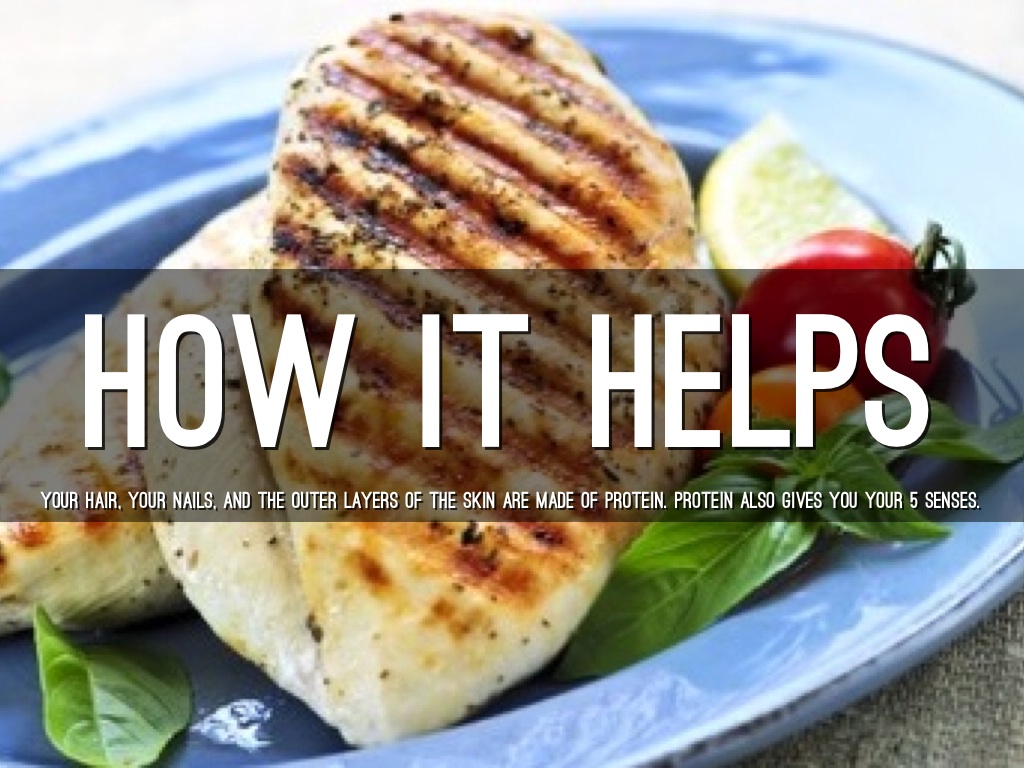 YOUR HAIR, YOUR NAILS, AND THE OUTER LAYERS OF THE SKIN ARE MADE OF PROTEIN. PROTEIN ALSO GIVES YOU YOUR 5 SENSES.