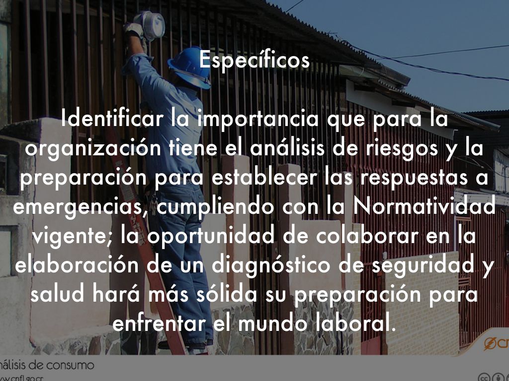 Identificar la importancia que para la organización tiene el análisis de riesgos y la preparación para establecer las respuestas a emergencias, cumpliendo con la Normatividad vigente; la oportunidad de colaborar en la elaboración de un diagnóstico de seguridad y salud hará más sólida su preparación para enfrentar el mundo laboral.