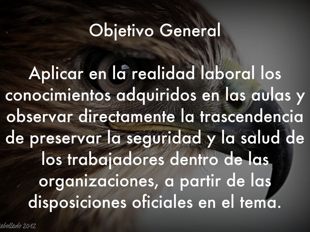 Aplicar en la realidad laboral los conocimientos adquiridos en las aulas y observar directamente la trascendencia de preservar la seguridad y la salud de los trabajadores dentro de las organizaciones, a partir de las disposiciones oficiales en el tema.
