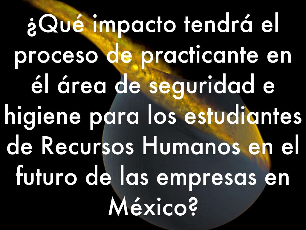 ¿Qué impacto tendrá el proceso de practicante en él área de seguridad e higiene para los estudiantes de Recursos Humanos en el futuro de las empresas en México?