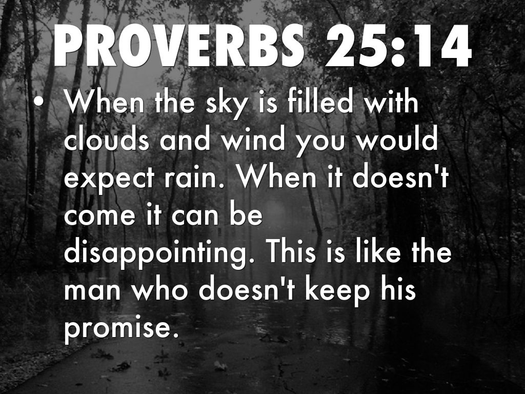 • When the sky is filled with clouds and wind you would expect rain. When it doesn't come it can be disappointing. This is like the man who doesn't keep his promise.