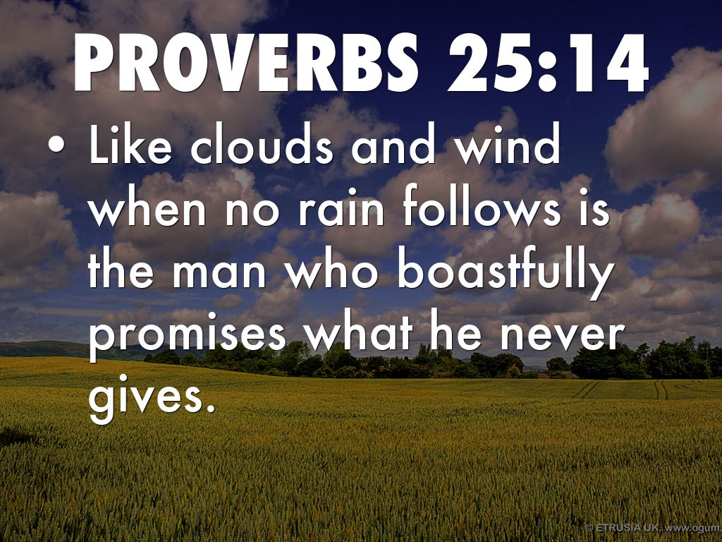 • Like clouds and wind when no rain follows is the man who boastfully promises what he never gives.