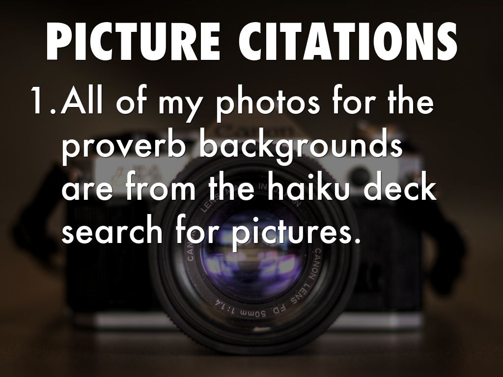 • All of my photos for the proverb backgrounds are from the haiku deck search for pictures.