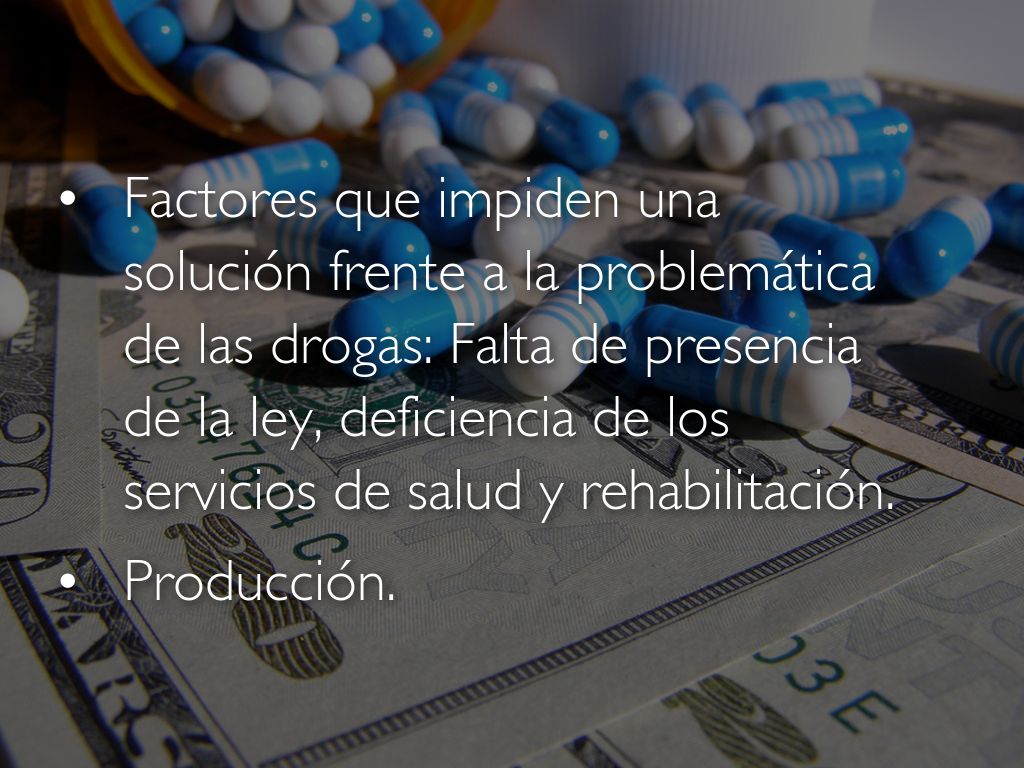 Factores que impiden una solución frente a la problemática de las drogas: Falta de presencia de la ley, deficiencia de los servicios de salud y rehabilitación.