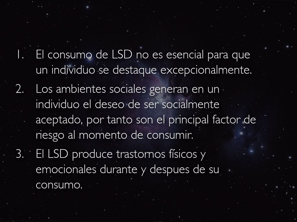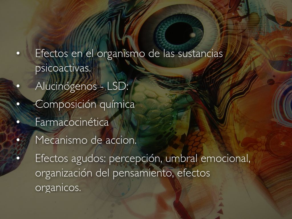 El LSD produce trastornos físicos y emocionales durante y despues de su consumo.