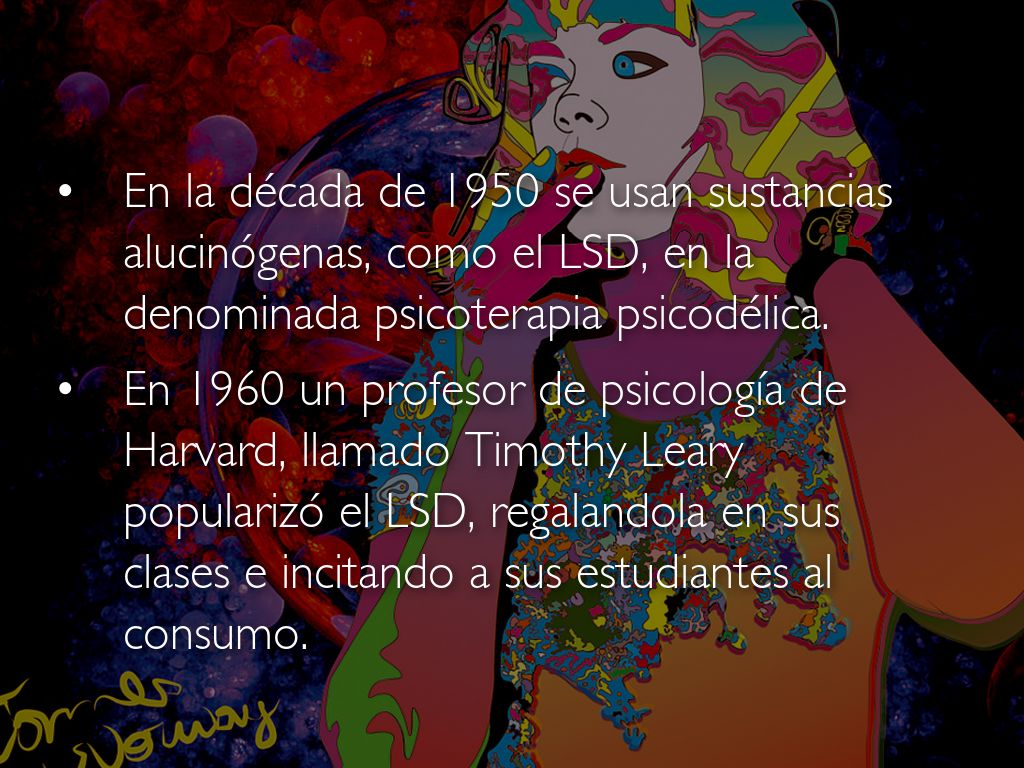En 1960 un profesor de psicología de Harvard, llamado Timothy Leary popularizó el LSD, regalandola en sus clases e incitando a sus estudiantes al consumo.