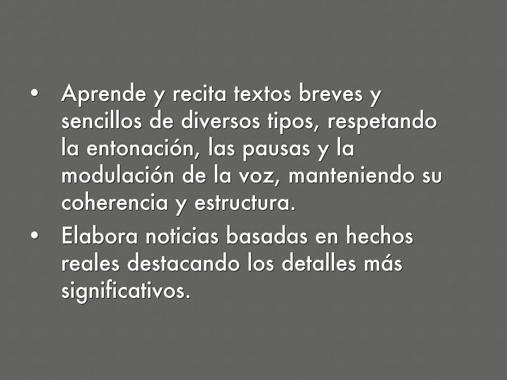 Aprende y recita textos breves y sencillos de diversos tipos, respetando la entonación, las pausas y la modulación de la voz, manteniendo su coherencia y estructura.