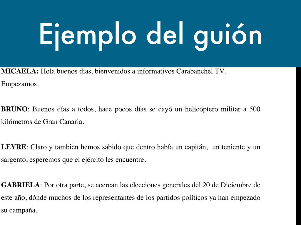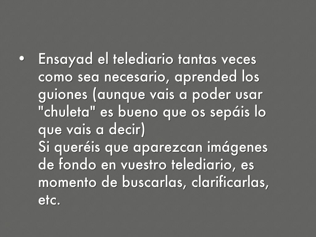 Ensayad el telediario tantas veces como sea necesario, aprended los guiones (aunque vais a poder usar "chuleta" es bueno que os sepáis lo que vais a decir)
