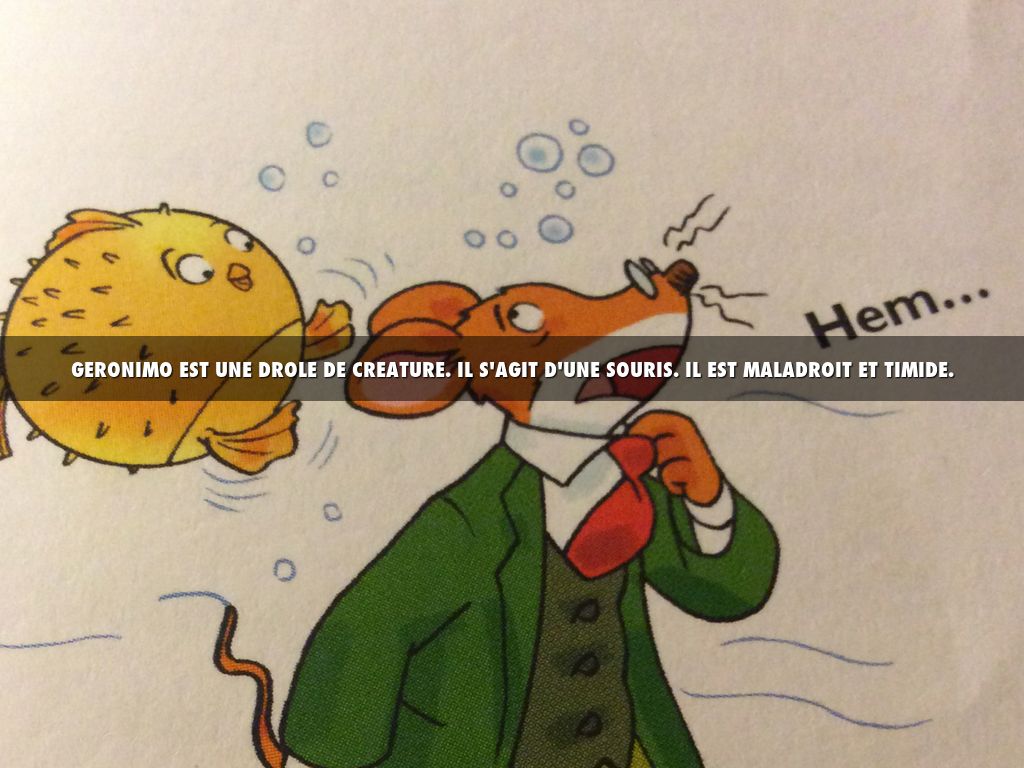 GERONIMO EST UNE DROLE DE CREATURE. IL S'AGIT D'UNE SOURIS. IL EST MALADROIT ET TIMIDE.