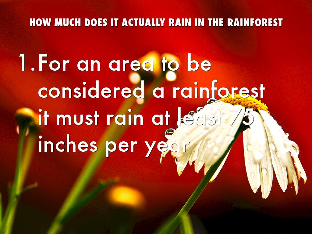 For an area to be considered a rainforest it must rain at least 75 inches per year