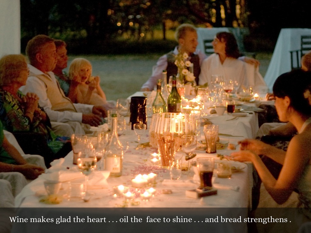 Wine makes glad the heart . . . oil the face to shine . . . and bread strengthens .