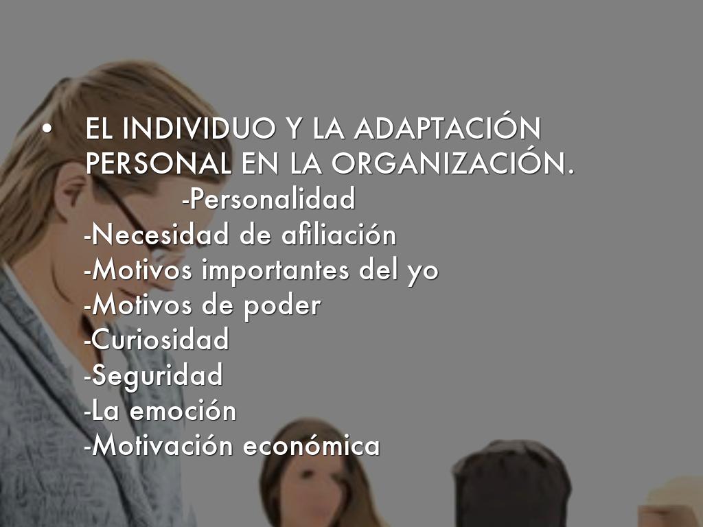 EL INDIVIDUO Y LA ADAPTACIÓN PERSONAL EN LA ORGANIZACIÓN. -Personalidad