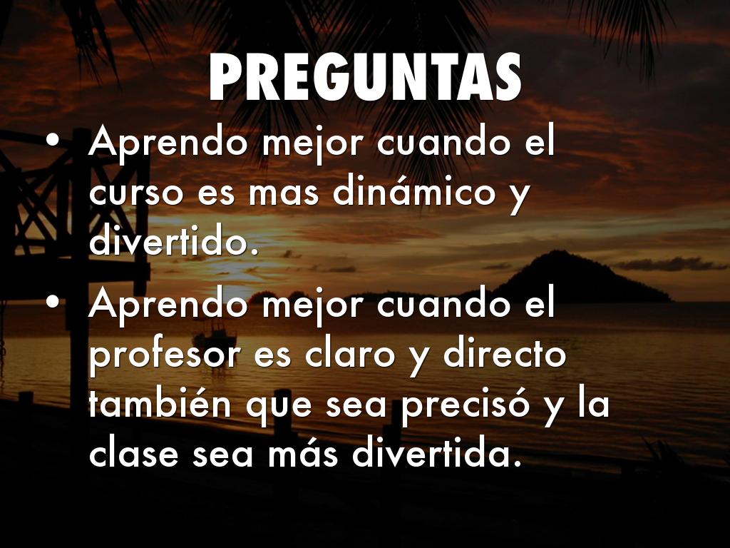 Aprendo mejor cuando el profesor es claro y directo también que sea precisó y la clase sea más divertida.