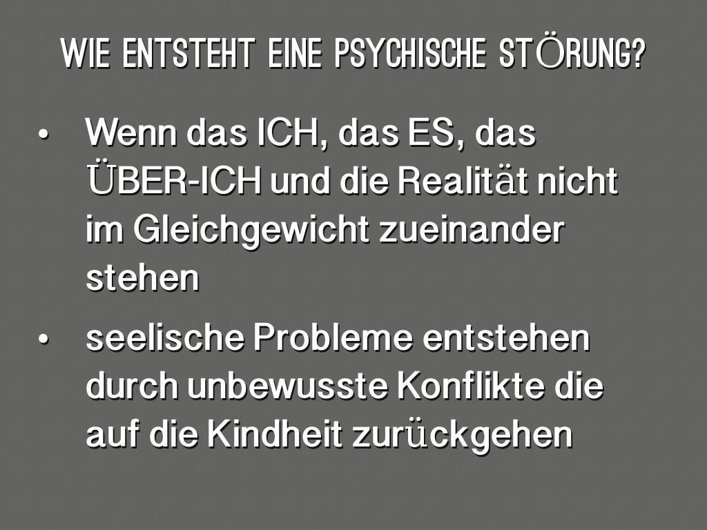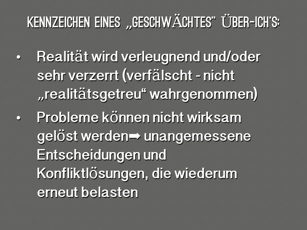 Fortwährendes Einsetzen führt zur Leugnung und Verfälschung der Realität ➡️ einem Realität nicht angepassten Verhalten (Ausgangspunkt für seelische Fehlentwicklung)
