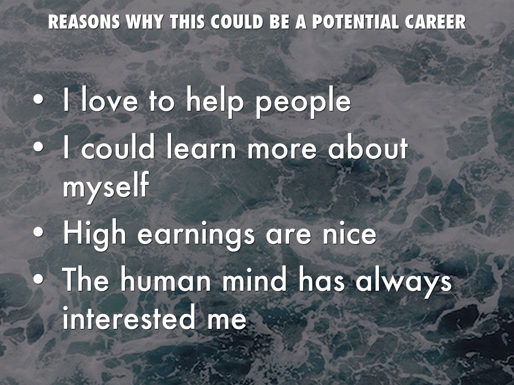 REASONS WHY THIS COULD BE A POTENTIAL CAREER