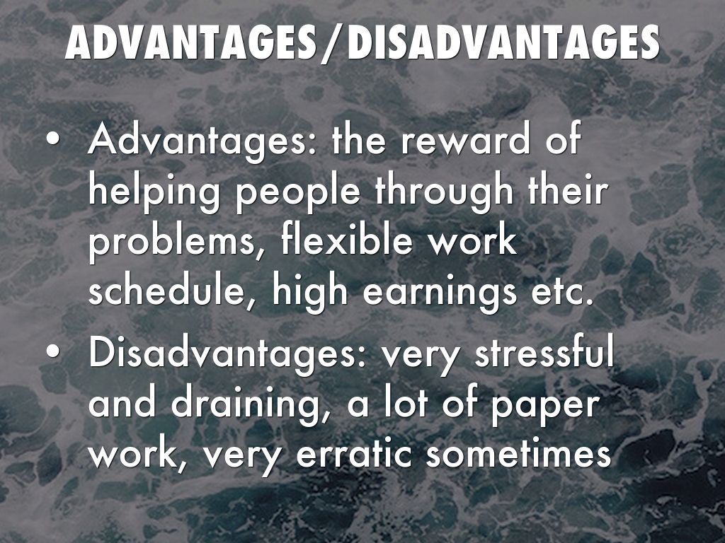 Disadvantages: very stressful and draining, a lot of paper work, very erratic sometimes
