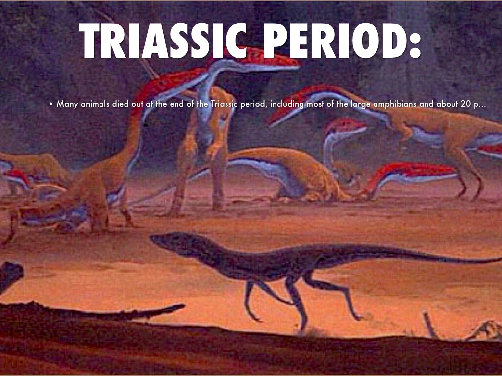 Many animals died out at the end of the Triassic period, including most of the large amphibians and about 20 percent of the reptiles.