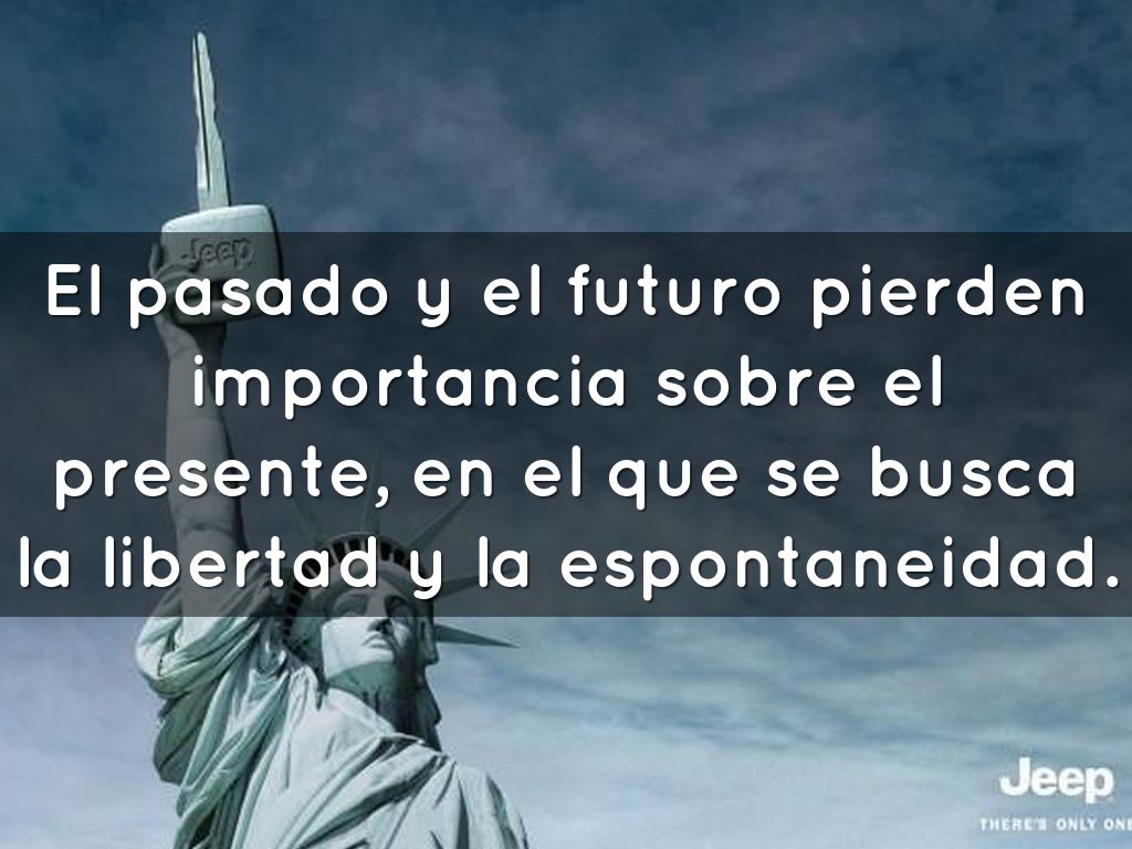 El pasado y el futuro pierden importancia sobre el presente, en el que se busca la libertad y la espontaneidad.