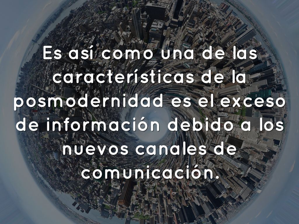 Es así como una de las características de la posmodernidad es el exceso de información debido a los nuevos canales de comunicación.