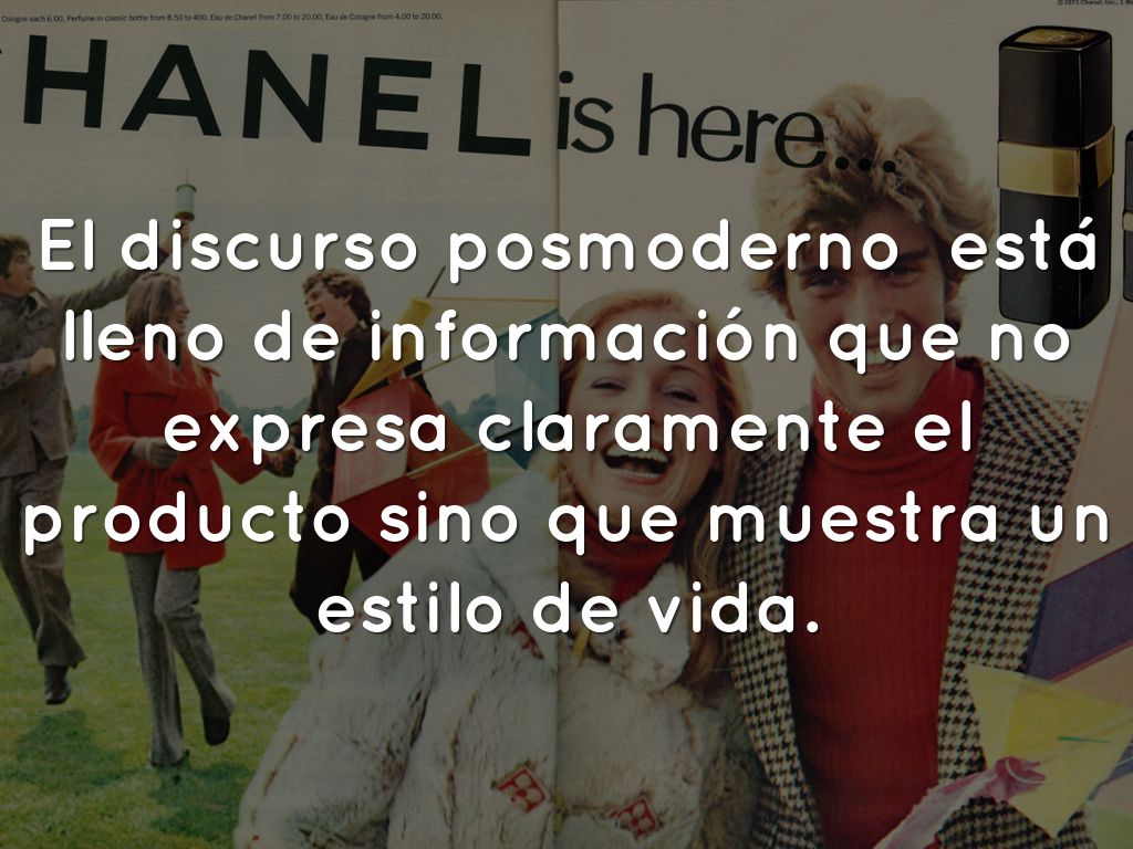 El discurso posmoderno está lleno de información que no expresa claramente el producto sino que muestra un estilo de vida.