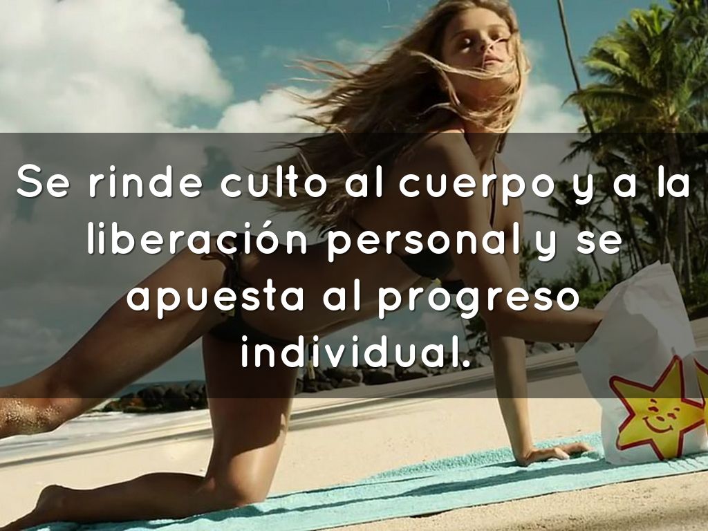 Se rinde culto al cuerpo y a la liberación personal y se apuesta al progreso individual.