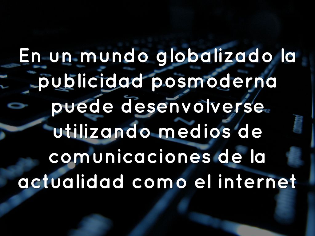 En un mundo globalizado la publicidad posmoderna puede desenvolverse utilizando medios de comunicaciones de la actualidad como el internet