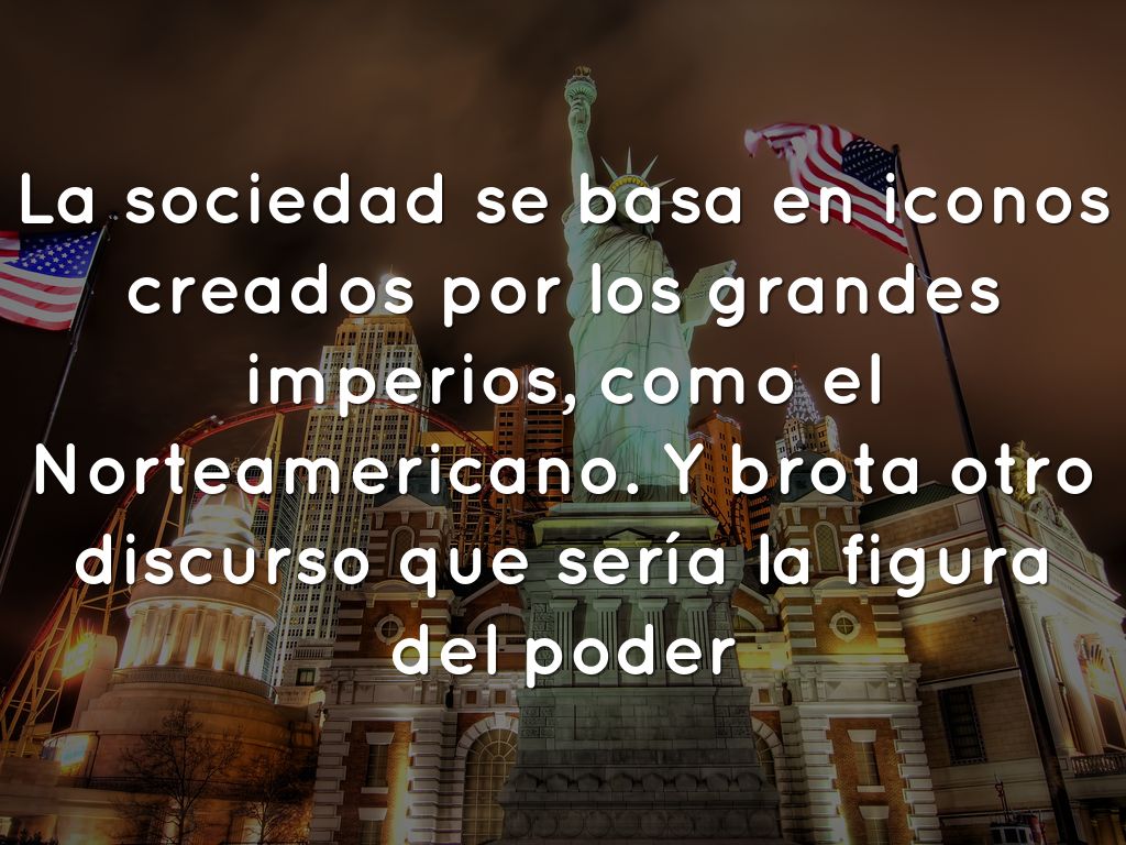 La sociedad se basa en iconos creados por los grandes imperios, como el Norteamericano. Y brota otro discurso que sería la figura del poder
