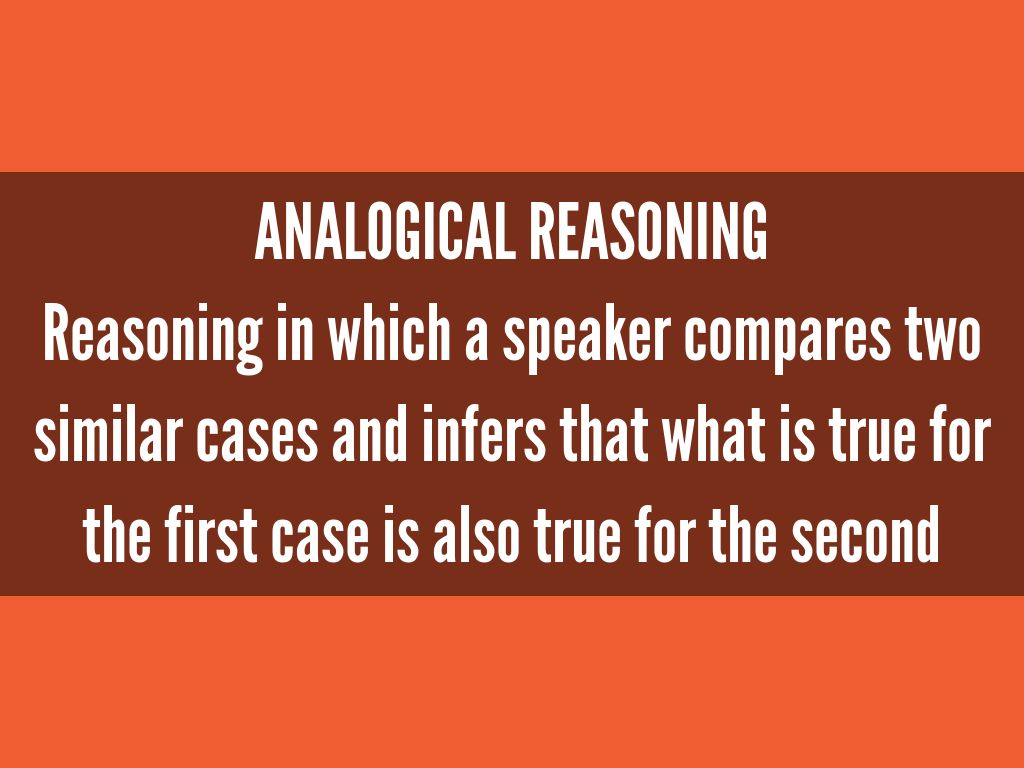 Reasoning in which a speaker compares two similar cases and infers that what is true for the first case is also true for the second