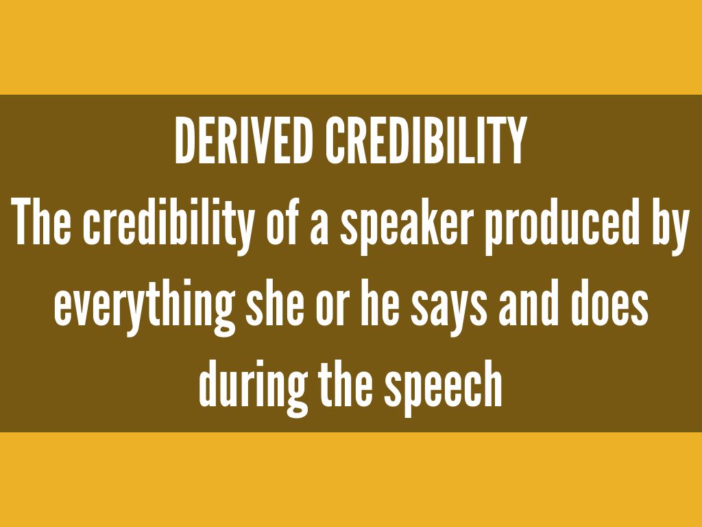 The credibility of a speaker produced by everything she or he says and does during the speech