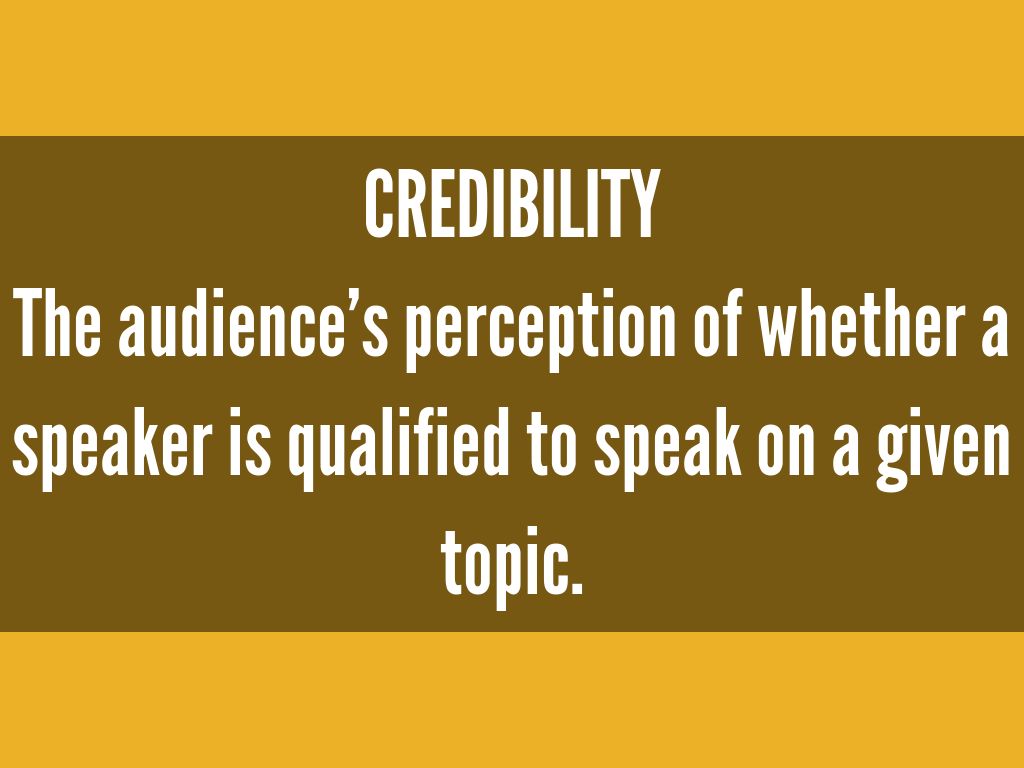 The audience's perception of whether a speaker is qualified to speak on a given topic.