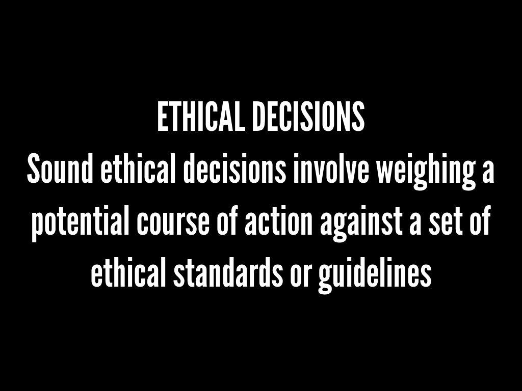 Sound ethical decisions involve weighing a potential course of action against a set of ethical standards or guidelines