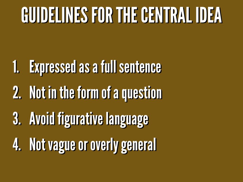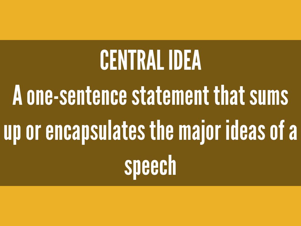 A one-sentence statement that sums up or encapsulates the major ideas of a speech