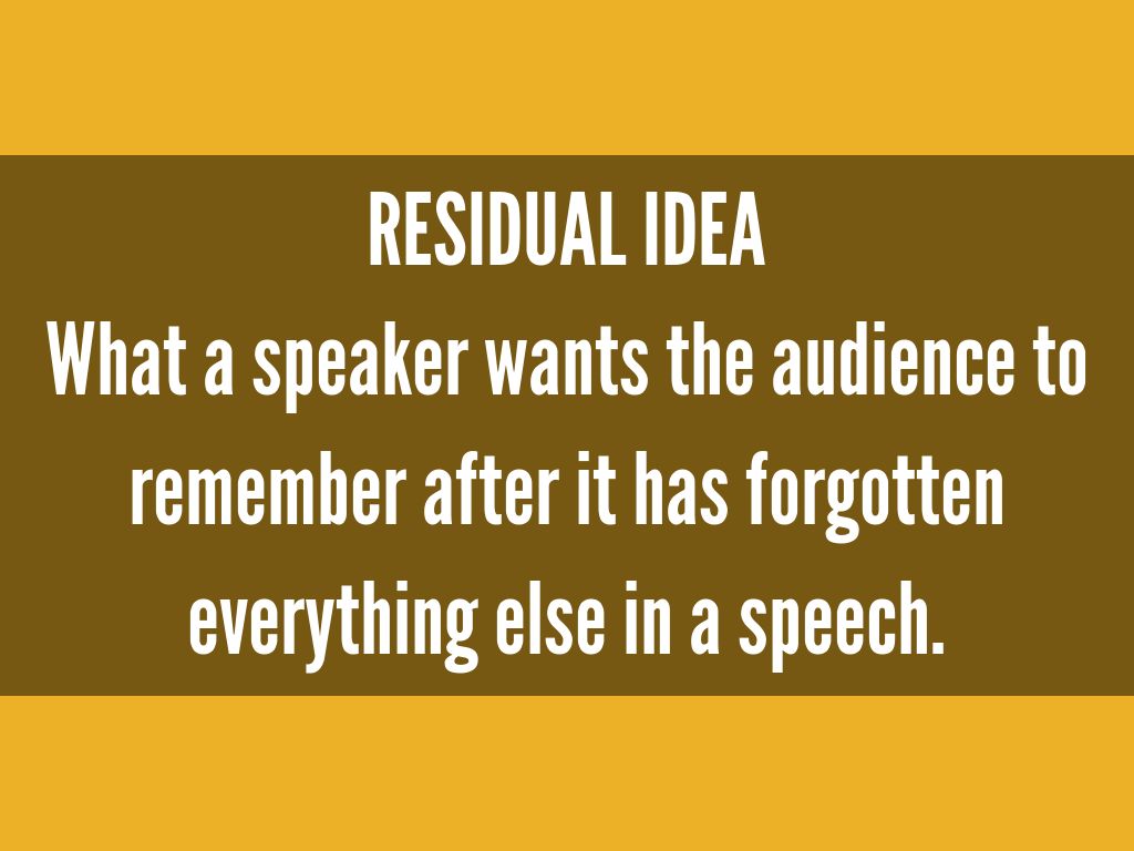 What a speaker wants the audience to remember after it has forgotten everything else in a speech.