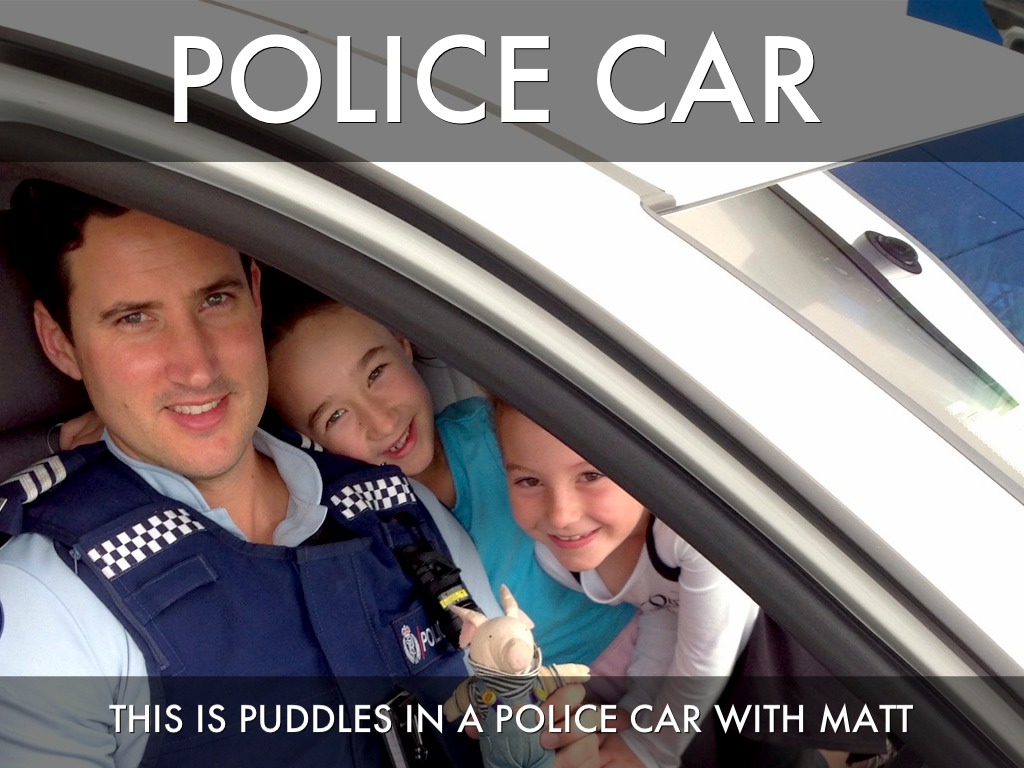 THIS IS PUDDLES IN A POLICE CAR WITH MATT