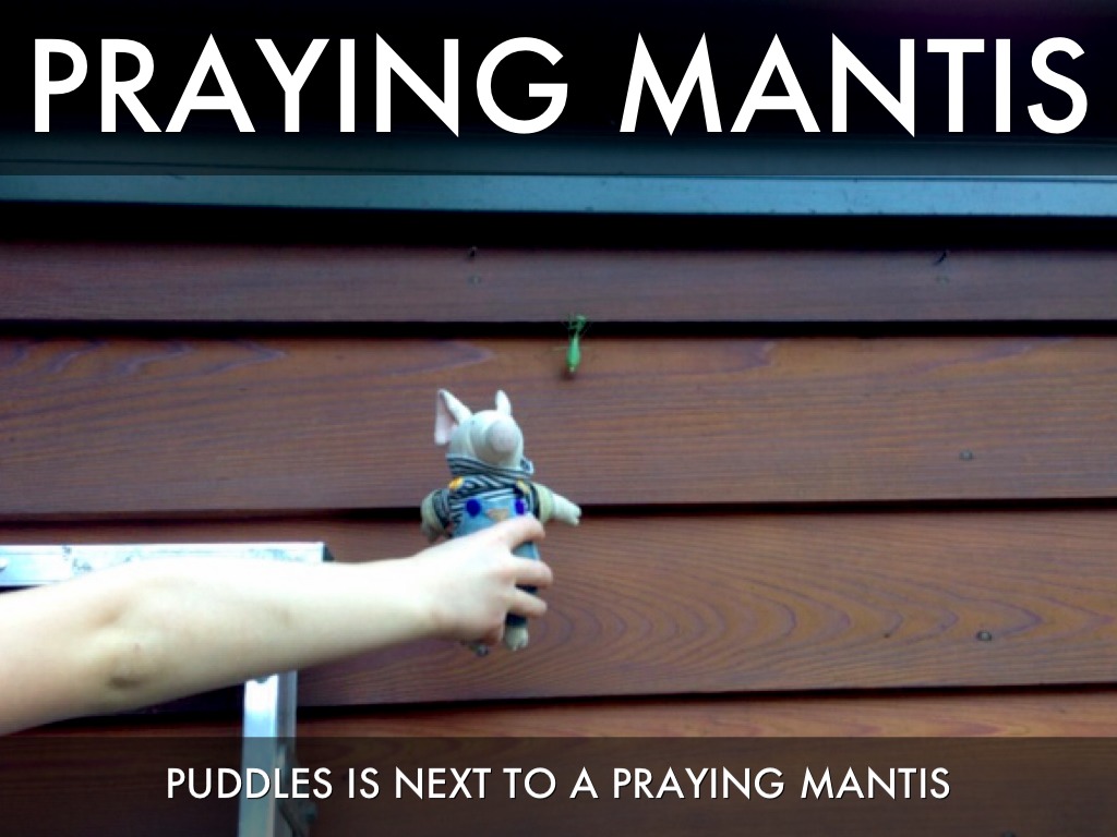 PUDDLES IS NEXT TO A PRAYING MANTIS