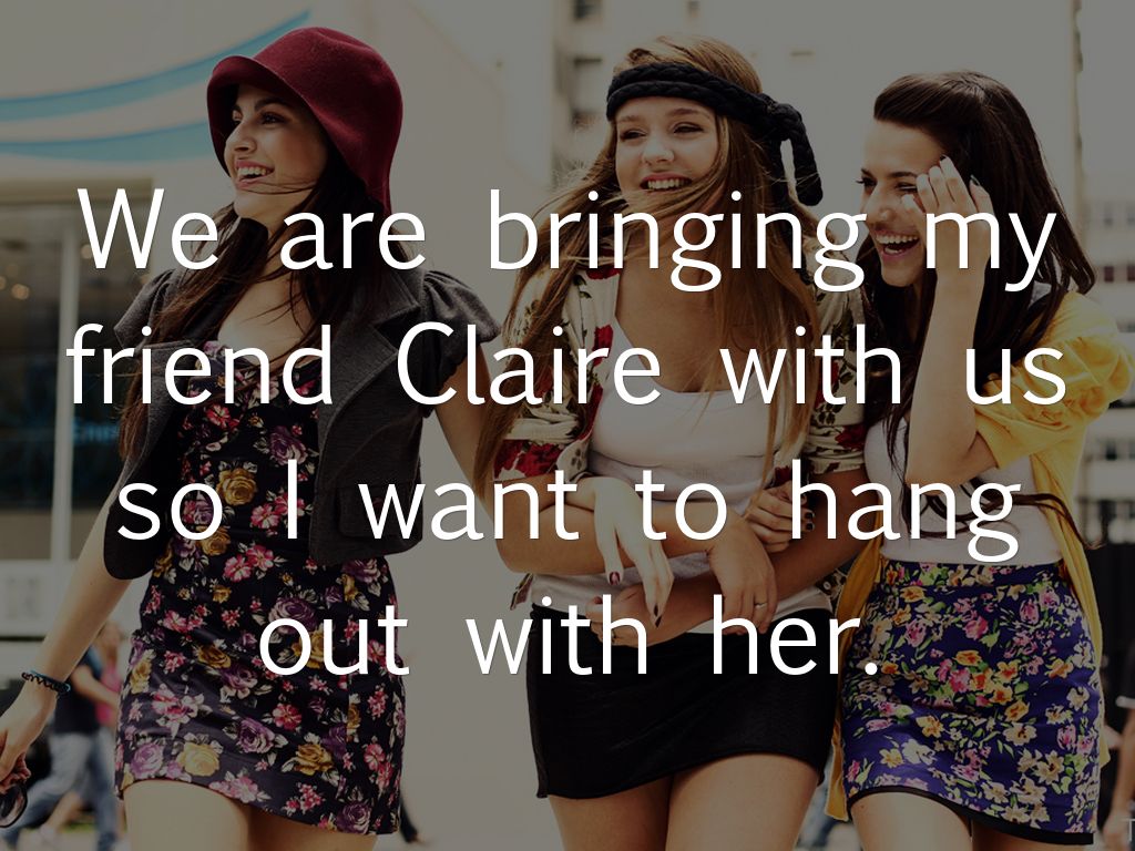 We are bringing my friend Claire with us so I want to hang out with her.