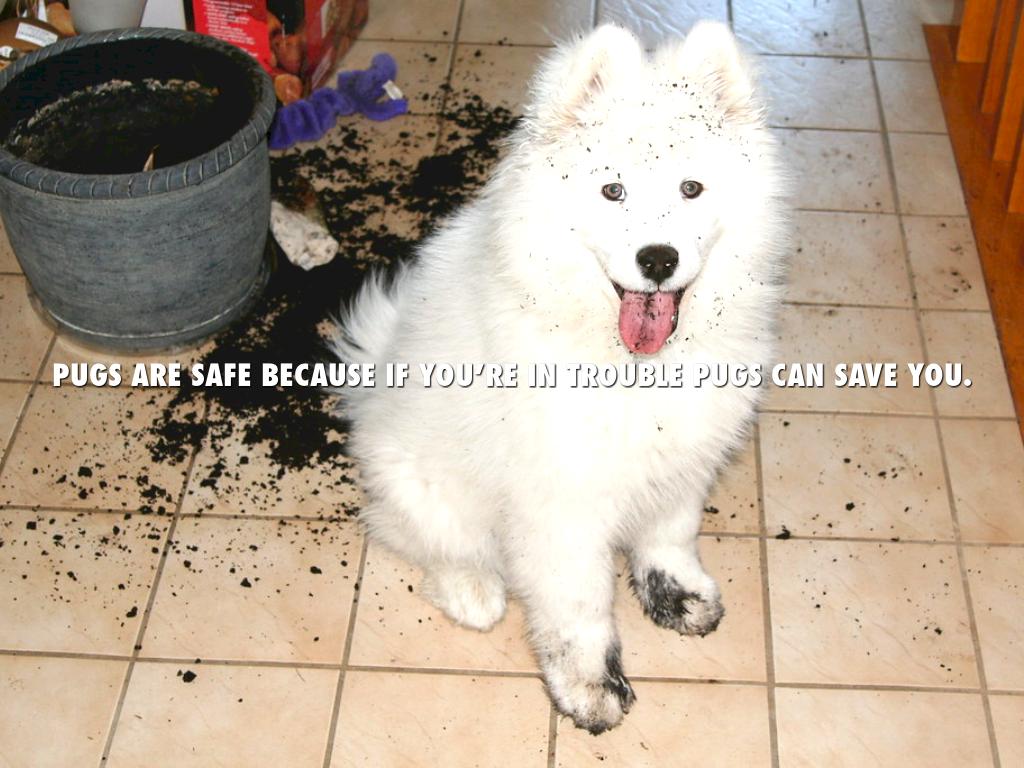 PUGS ARE SAFE BECAUSE IF YOU’RE IN TROUBLE PUGS CAN SAVE YOU.