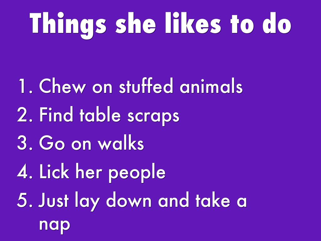 I love my puppy a lot. She is a Chihuahua mixed with Schnauzer. We found her on Craigslist and she only costed $300.00 which is kind of a large price. She is a lap dog. She loves to play. Her favorite things to do is going on walks and chewing up clothes, shoes,etc(anything she can find) Bad Dog! She is one of my most prized possesions.
