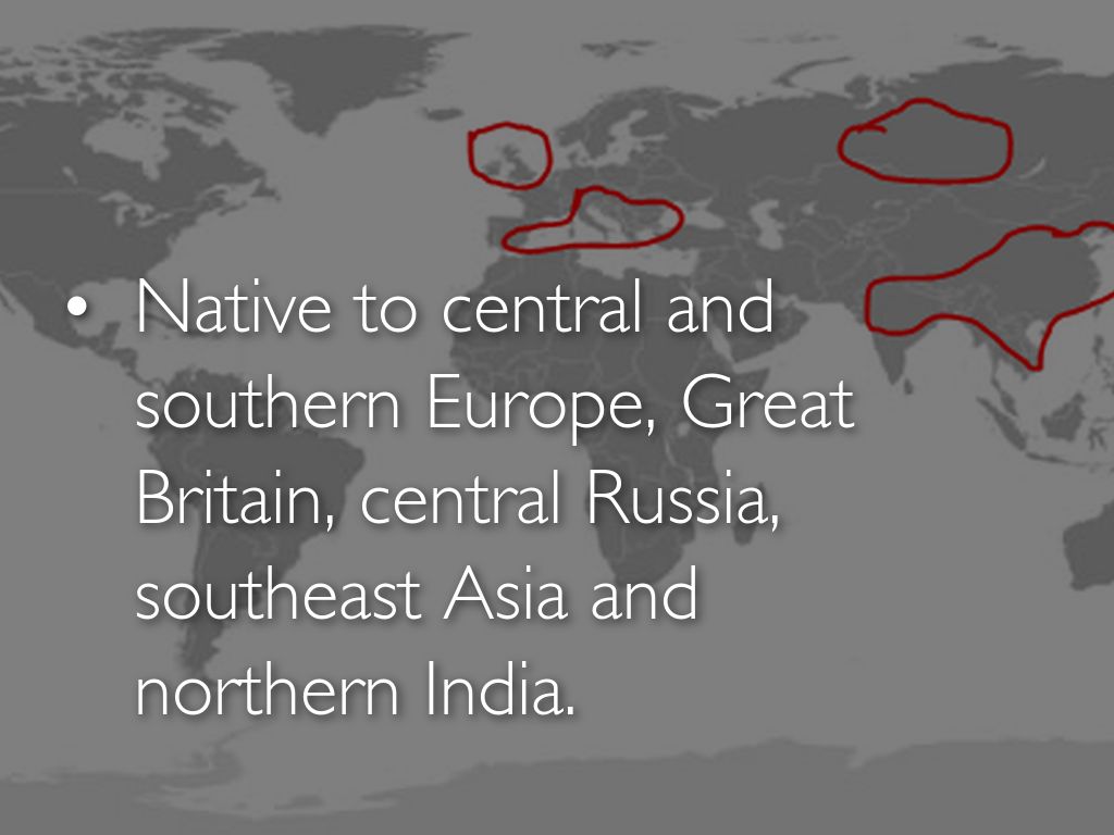 • Native to central and southern Europe, Great Britain, central Russia, southeast Asia and northern India.