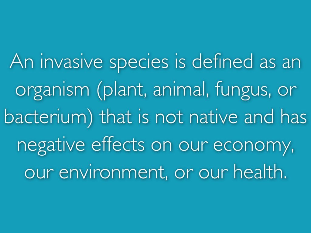 An invasive species is defined as an organism (plant, animal, fungus, or bacterium) that is not native and has negative effects on our economy, our environment, or our health.