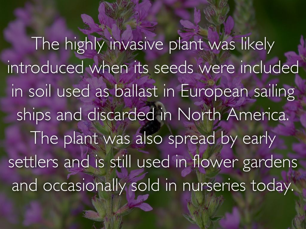 The highly invasive plant was likely introduced when its seeds were included in soil used as ballast in European sailing ships and discarded in North America. The plant was also spread by early settlers and is still used in flower gardens and occasionally sold in nurseries today.