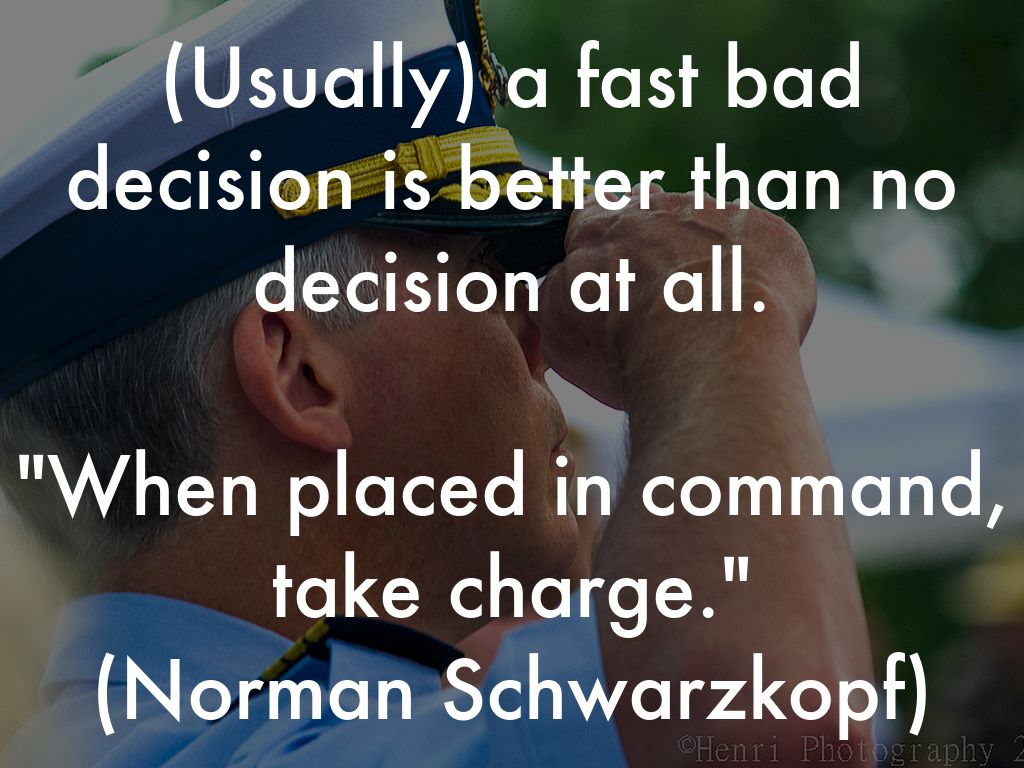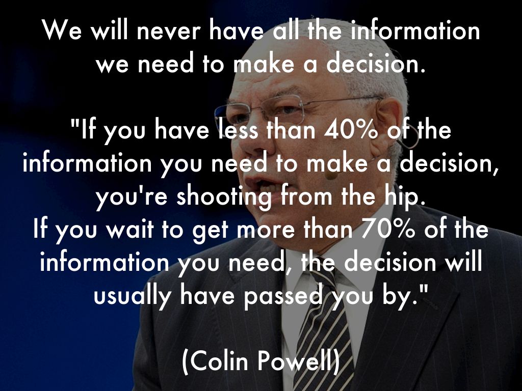 "If you have less than 40% of the information you need to make a decision, you're shooting from the hip. If you wait to get more than 70% of the information you need, the decision will usually have passed you by."